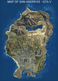 San Andreas in GTA V consists of two main regions, Los Santos and Blaine County. Los Santos is the main city with tall buildings and urban areas based on the real-world Los Angeles. Blaine County is more of a countryside that is closer to nature. It consists of farmlands, hills, peaks, a huge lake called the Alamo Sea and highways running all around the map. This map of San Andreas is not the same as the one from the previous title Grand Theft Auto San Andreas but is an updated version with many changes and very few similarities.
