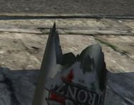 The Broken bottle is a green glass bottle with the Stronzo logo on it. It is broken in half, with the bottom part having very sharp edges. It is a melee weapon that is used to strike a target with the sharp end of the bottle.
