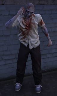 In GTA 5, Graham is found on the corner of Alta Street and Vinewood Boulevard dressed as the Vinewood Zombie, who is a character in the film “Vinewood Zombie” by Solomon Richards. He can be interacted with by any protagonist. He reveals that he attended college and majored in philosophy and also that he regrets it. Graham also takes a phone call from his mother telling her that he is still doing the Zombie bit and making his money. He says to her that his act is a postmodern statement "on the proliferation of zombies in culture". After the call or after speaking to the player, he goes back to acting like a Zombie, making strange sounds. Interacting with Graham unlocks the Vinewood Zombie as an actor in Director Mode.