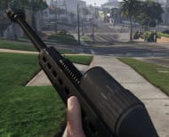 This weapon is a one-shot kill with high penetration armor piercing .50 BMG cartridges. The advanced scope can be zoomed in to quite a distance helping with a very precise shot. This gun can be reloaded even without scoping out and being semi-automatic. It can shoot rounds without long intervals in between, unlike bolt action rifles. The sniper can however not be fitted with a suppressor and hence cannot be used stealthily. The Marksman Pistol is the only gun that beats the Heavy Sniper considering the damage done by a single bullet.