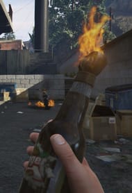 The Molotov Cocktail is a throwable weapon in GTA V. It cannot be purchased and is only found in certain locations around the map. When thrown, the bottle breaks and due to the alcohol it instantly creates a small pool of fire.