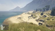 This is the northmost point in San Andreas. A lot of greenery can be seen here along with the coastal area. Wildlife can also be spotted in the open lands. Many NPCs are seen gathered on the open coast next to the northmost point, where music can be heard playing and a few off-road bikers can be spotted, with onlookers cheering for them. A Sanchez spawns close to this location.