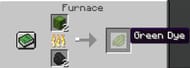 Obtaining the green dye is quite different from the others as it involves using a furnace rather than using a crafting table. By smelting a block of cactus with any fuel source in a furnace you will be able to get one unit of green dye per block of cactus.