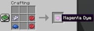 Like before, just putting them into a crafting grid will give you 2 units of magenta dye. With the use of any of the above recipes, you will be able to craft magenta dye.