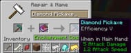 Using an anvil to apply efficiency V to a diamond pickaxe (via screenshot)