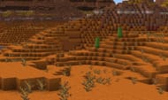 Eroded Badlands are a part of the badlands biome and they are quite easy to identify due to their visually distinct color palette. They have large spikes that can be seen from far away, these spikes are made from different colored terracotta blocks. The surface of the biome is covered with red sand on which you can find cacti and dead bushes.