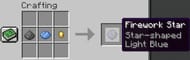 Firework stars are an item that the player can craft which allows the firework to have a color and explosion pattern to them. This item requires you to combine one piece of gunpowder with the dye color of your choice. This gives you the basic firework star, the small ball firework star. This indicates the size of the explosion that will occur.