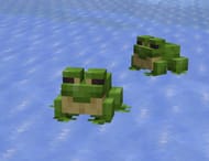 When on land frogs like to wander around slowly and jump around randomly. They can jump up to eight blocks high and also take reduced fall damage as compared to other mobs. They like to jump on lily pads and big drip leaves. When in water, they move much faster and like to stay at the surface of the water even though they are immune to drowning.