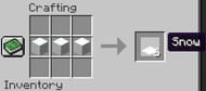 Any other tool, even if enchanted by Silk Touch, destroys the snow and drops nothing. Players can also craft snow by using three snow blocks and placing them in a horizontal line across the crafting grid.