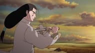 Fugi wore a grey outfit called a tangzhuang, with a button-up collar and yellow designs at the bottom and on the sleeves. He paired it with red pants and black shoes. He had long, dark hair that was tied back in a low ponytail and dark purple eyes. He also had pointy ears and four tear-shaped markings on his face.