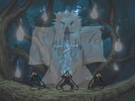 Hiruzen, unaffected by the genjutsu, tries to free Tsunade as the planet is wrapped up by the God : Nativity of a World of Trees, but ultimately fails. He and the other Hokage arrive at the site of a powerful chakra signature, but only discover Madara Uchiha’s lower half of the body, from which the Sage of the Six Paths emerges.