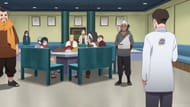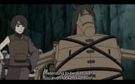 During the conference with the other Kage, Kurotsuchi is questioned and confesses to her plan, which angers Darui. Shikamaru restrains the Kage over Naruto's objections because he has no other choice: he wants to break the Tsuchikage's neck.