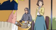 When Naruto Uzumaki and Shino Aburame were talking to Futa Kagetsu about the mission, Mai Kagetsu met them and invited them for dinner. When they were about to start dinner, Shino said to let him taste the food first because he suspected poison, and when Shino ate it, he started laughing and told that it contained some laughing drug which made Mai worried about Shino.