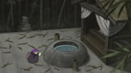 On Mount Myōboku, there is a sacred fountain that releases a special oil that allows people to more readily feel the natural energy around them, but if the individual is not completely motionless when becoming one with nature, he or she begins to transform into a toad and finally turns into stone. This oil can only exist in the mountain’s environment and will evaporate if transported outside. There are numerous sculptures of frog ancestors and those who attempted to acquire senjutsu but failed and became toad statues. The statues are held in high regard.