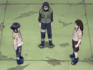 The Recovery Team is trapped in Jirobo's Earth Prison Dome of Magnificent Nothingness once they catch up with the Sound Four. They manage to escape after Neji finds a flaw in the prison's defenses, but they must leave Choji behind to hold off Jirobo while they pursue the remaining Sound Four. Kidomaru ties them up with his webbing when they finally catch up with him. Kidomaru's webs can only be broken by Neji because of his refined chakra control. Before telling the others to go without him, he forewarns them that it's likely that one-on-one battles are bound to happen in this mission.