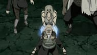 As Tsunade works quickly to treat him, Onoki expresses gratitude. While Tsunade completes healing him and Gaara, A and Mei wait. Onoki informs Naruto that the fight is not just about protecting him anymore but also about protecting everyone, as Naruto's clone begs Tsunade to heal him as well. Onoki creates a rock golem to shield them when Madara attacks and Gaara places his Shield of Sand on top of it to resist the attack further. Onoki creates a strategy and enlists A and Mei's assistance.