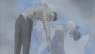 Onoki informs Gaara that they can no longer escape and should start attacking the enemy from a distance to watch how they react until the sun comes out on the second day of the fight. Gaara sends a huge sandstorm at the Kage, but the Fourth Kazekage stops it. Gaara's sand then imprisons the Kage as Onoki prepares to attack, but Mu manages to flee and block the attack. The area is destroyed when their Dust Release techniques clash. Then, Onoki says that Mu's strength had not diminished at all.