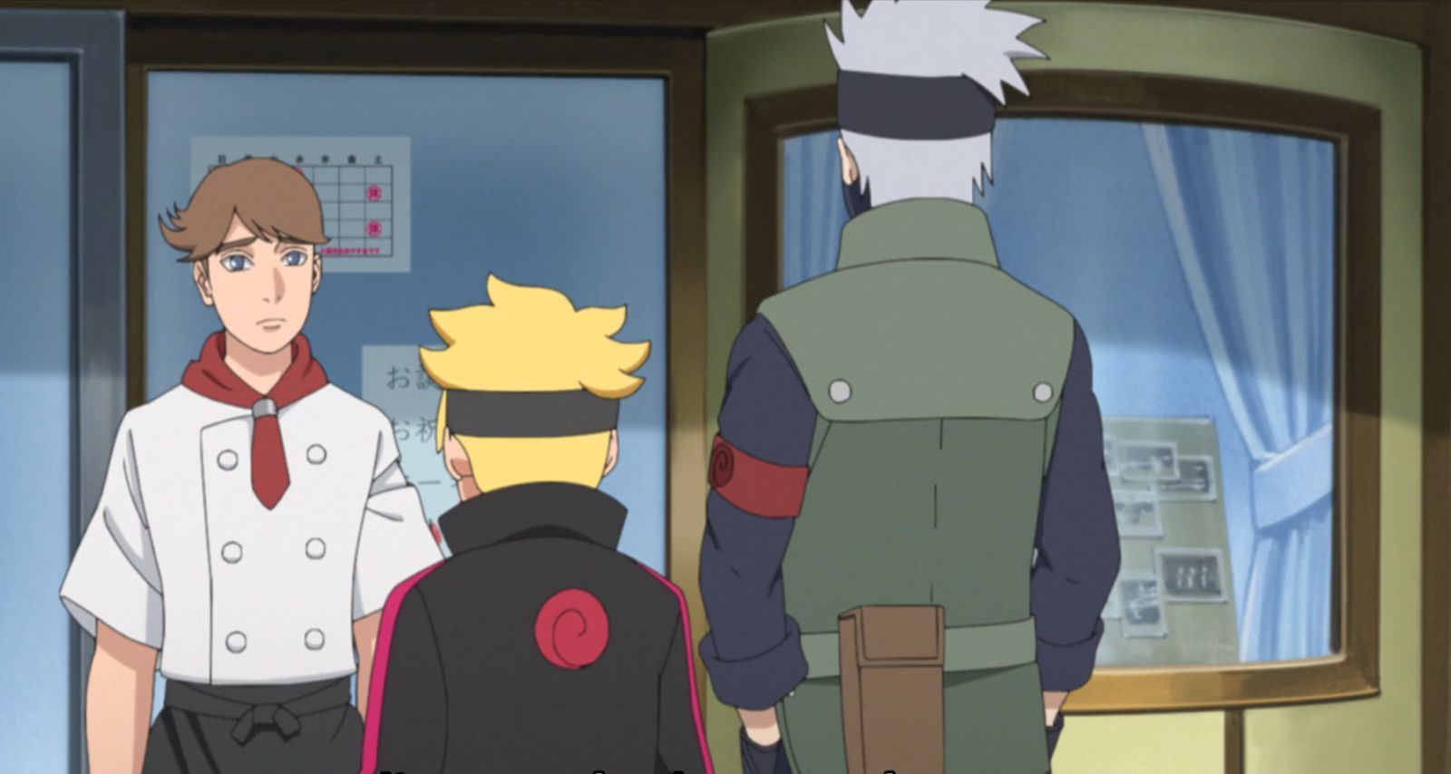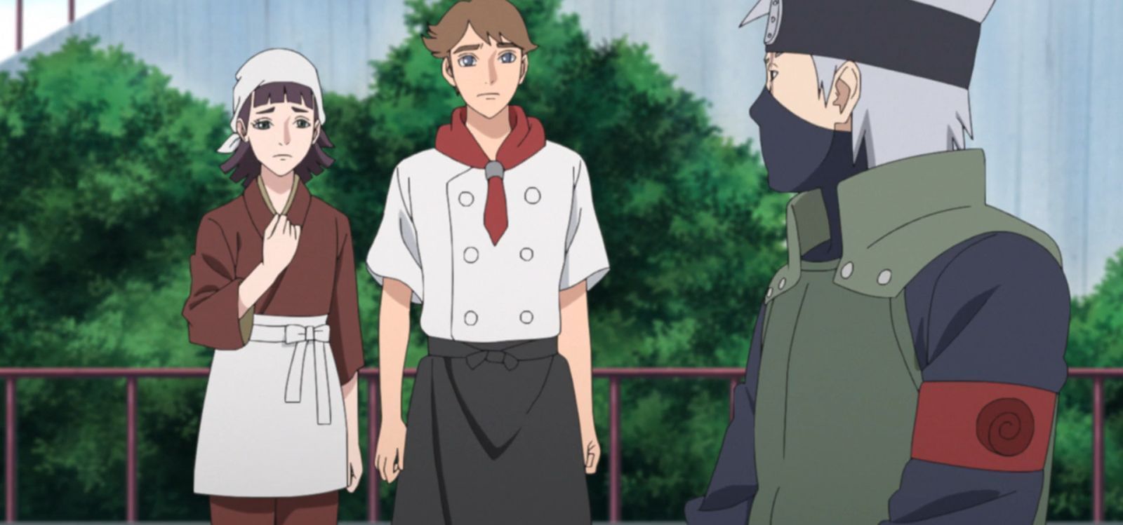 Yubeshi convinced Kakashi to help her and Sabure to get married. Kakashi and Boruto went to Sabure’s pastry shop where Kakashi got to know that Ohagi and Taruto were friends. When they asked Taruto about that, he asked them to leave the shop. While going out, Sabure apologized and explained the whole story behind the fight and the rivalry.