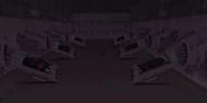 Nagato keeps the bodies in a concealed chamber within Amegakure’s tallest tower when not in use. There are six “pods” within the room where the bodies rested; each pod is connected to the wall through pipes or wires and has a sliding cover that appears to display the Amegakure emblem and conceals the face of the inactive body. The pods are likewise numbered one through six using daiji characters and are ordered counter-clockwise around the room, following the ordering of the six Buddhist Paths of Reincarnation.