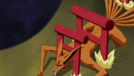 Infuriated by Naruto’s actions, Nine-Tails prepares to attack him with a Tailed Beast Bomb. Naruto notices his seal has changed, representing a swirl pattern on his stomach. He locks the seal, which blocks the fox’s attack in its tracks and seals it. He also restricts the fox’s movement with the massive torii. Nine-Tails curses Kushina for interfering and using her Adamantine Sealing Chains against him.