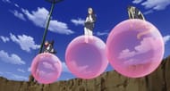 In the quiz round, they had to give a true or false answer by standing on the respective spot, but then both spots had a pit underneath them. Sai said that whoever fell in the Ink pit would be disqualified. Right then, both spots popped out, but Yurui used his Bubblegum technique to keep himself and his teammates afloat and they were able to clear the first stage.
