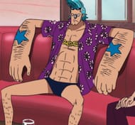 He has a running gag about being associated with "perverted" things because of a mix of his clothes, strange demeanor, and the situations he finds himself in. When someone calls him a pervert, he considers it a compliment. Franky also habitually substitutes the word "hentai" (pervert) for others. His lack of fashion sense appears to be a result of the fact that his creativity tends towards mechanics and crafts, which would account for his style of clothing, which typically consists of nothing more than his signature swim briefs, a large golden chain necklace around his neck, and a shirt concealing his somewhat bulky upper body build.