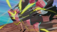 In One Piece Art NUE, Franky and the group assist Toratsugu in rescuing Kikuhime from Lark.