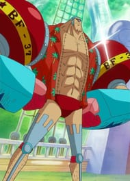 Franky recognized that his blood-soaked and severely injured physique needed urgent repair after barely surviving the event and floating to an abandoned ship. He repaired his body and transformed into a cyborg using the ship's components and shipwrighting abilities. Battle Franky 36, his thirty-sixth iteration of the same name, was given to this new body.
