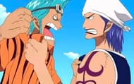 For framing Iceburg, Tom, and Franky in the attack on the Judicial ship, Franky has a particularly bitter grudge against Spandam. After ten years, they finally crossed paths at Enies Lobby, and Franky was so upset at Spandam for making fun of Tom that he cruelly bit the man twice on the head. Later, during the Enies Lobby Arc, he destroys Spandam's plans to rise to power by destroying Pluton's designs as payback and smashing him with Funkfreed.