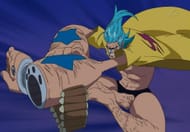 In addition to his power, Franky demonstrates great expertise when using any object, whether in or out of action. Franky is a very competent boxer who, even without his cyborg features and arsenal of weapons, combined with his cybernetically boosted physical strength, can defeat highly skilled and dangerously powerful assassins with swift and forceful blows.