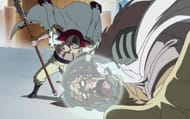 Whitebeard surrounds his naginata, the Murakumogiri, with a quake bubble to greatly increase its striking power and range.