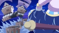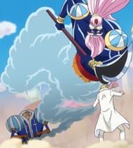Daifuku uses the genie as a partner for fighting. The genie comes out from his belt buckle and attacks his enemies. In order to use this power, he would need to constantly rub his stomach. The genie is very powerful and even overpowered Sanji. The genie usually asks his master for any action that he needs to take.
