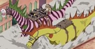 The Frankly Family divided into three teams after recalling what Kokoro had told them. While Zambai leads the rest of the group into the Courthouse to support the Straw Hats, Mozu and Kiwi lead two groups in the direction of the towers.