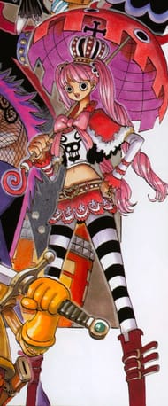 Perona, better known as "Ghost Princess," was the leader of the Wild Zombies and Surprise Zombies before Thriller Bark's collapse. She was one of the Mysterious Four. She reluctantly assisted and collaborated with Roronoa Zoro whilst in Dracule Mihawk's residence on Kuraigana Island following the defeat of Gecko Moria's army and throughout the time skip.